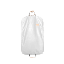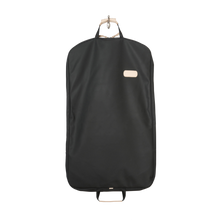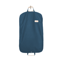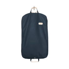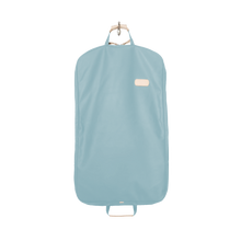 • Load image into Gallery viewer, Quality made in America durable coated canvas hanging and folding garment bag with leather patch to personalize with initials or monogram