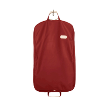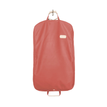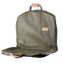 40" long coated canvas garment bag with Natural Leather details.