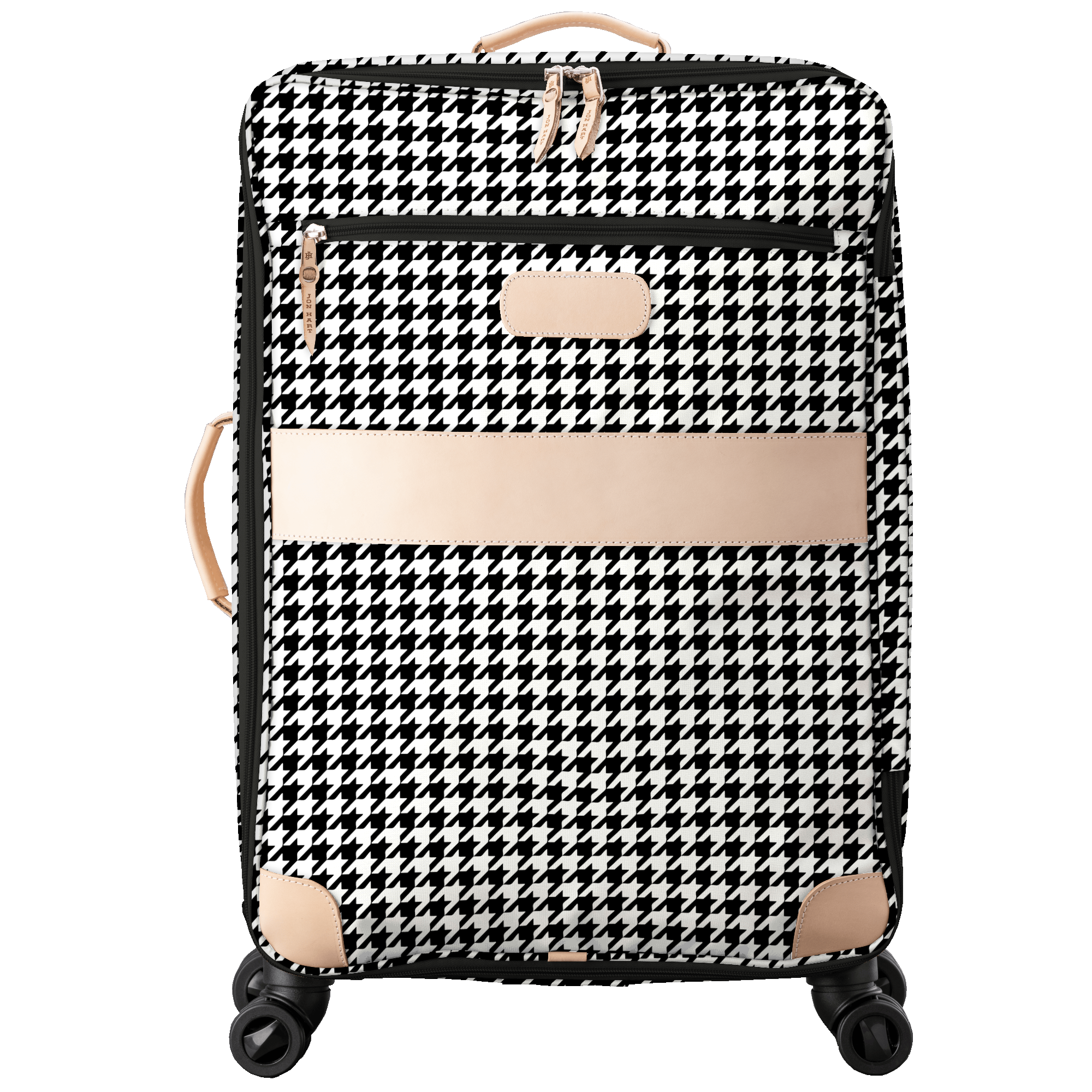 You are going places with this large 360 degree rolling luggage. The included clear cover and removable garment sleeve adds longevity and function to the most beautiful American made luggage around. Available in coated canvas with generous amounts of natural leather trim. The front has a zipper pocket as well as a lined sleeve to hold folders, documents and other items that you need to slip in and get out easily. Natural Leather handles on top and side so that you can lift it from the top or side. Retractable comfort grip handle system. The honeycomb internal frame is light weight, strong and durable. 360 degree wheels for easy rolling. Includes a Natural Luggage Tag and Handle Wrap, removable Garment Sleeve, and Clear Cover with purchase.