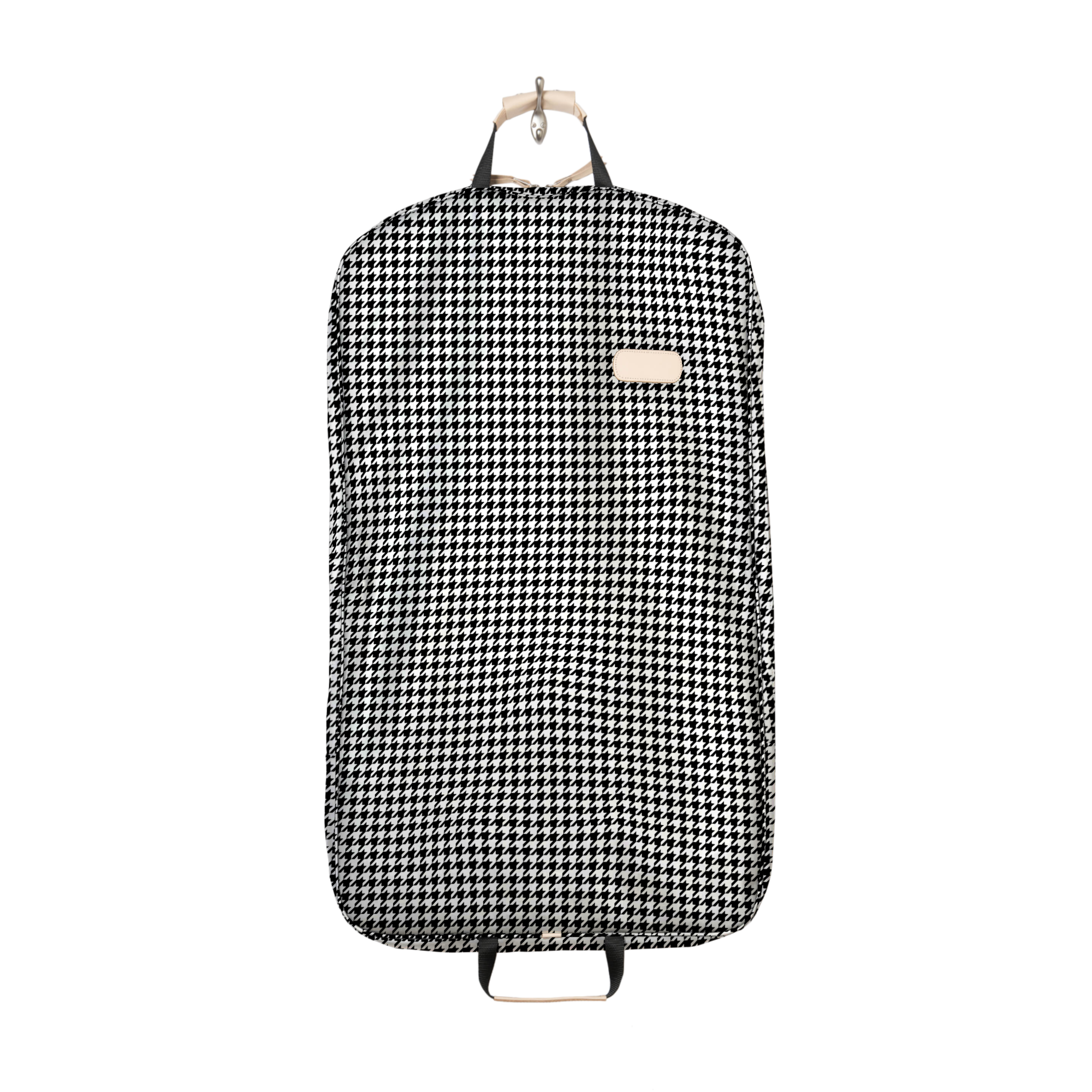 40" long coated canvas garment bag with Natural Leather details.