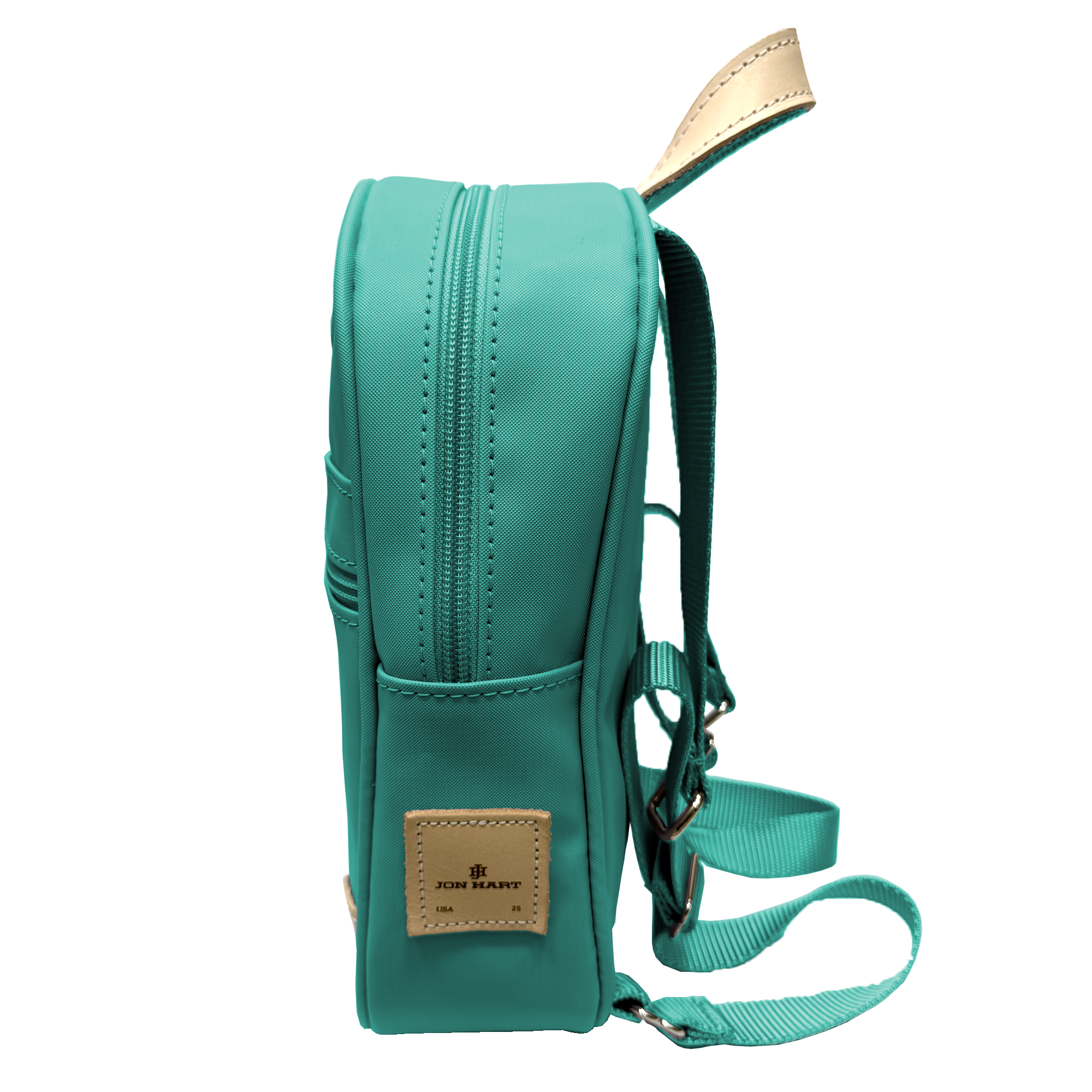 Start them young with a Jon Hart mini backpack. Perfect for the little that wants to be a big kid and still travels light. With just enough room for the essentials this bag will stay light so that you don't end up carrying it for them. Coated canvas with natural leather trim.